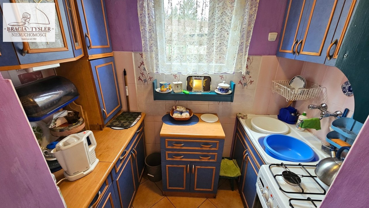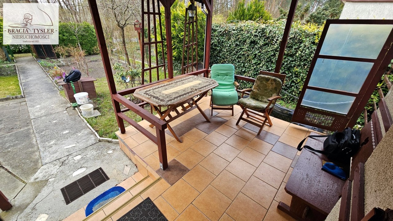 Domek jest wykonany bardzo starannie. Do zamieszkania od zaraz. Ściany wykonane z cegły i suporeksu. Okna PCV i drewniane. Rynny PCV. W salonie kafle i gładzie. Łazienka z WC i kabiną prysznicową. Bojler elektryczny. Kuchnia, łazienka kafle. Wyposażona kuchnia. Zabudowa kuchenna, kuchenka, zlew, meble. W salonie komoda, stoły, krzesła, wersalka, szafy. Dwa pojemne pomieszczenia gospodarcze. Prąd, woda, kanalizacja na działce. Działka w całości ogrodzona płotem z siatki. Zagospodarowana. Ogrzewanie - elektryczne. Duży taras. Na działce posadzone drzewa, wiśnia, borówki, winogrono, drzewa krzewy ozdobne. W pobliżu las. Wyposażenie domku w cenie. Kanalizacja gminna. Grill murowany i oczko wodne. Drewniane okiennice.