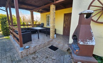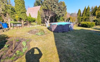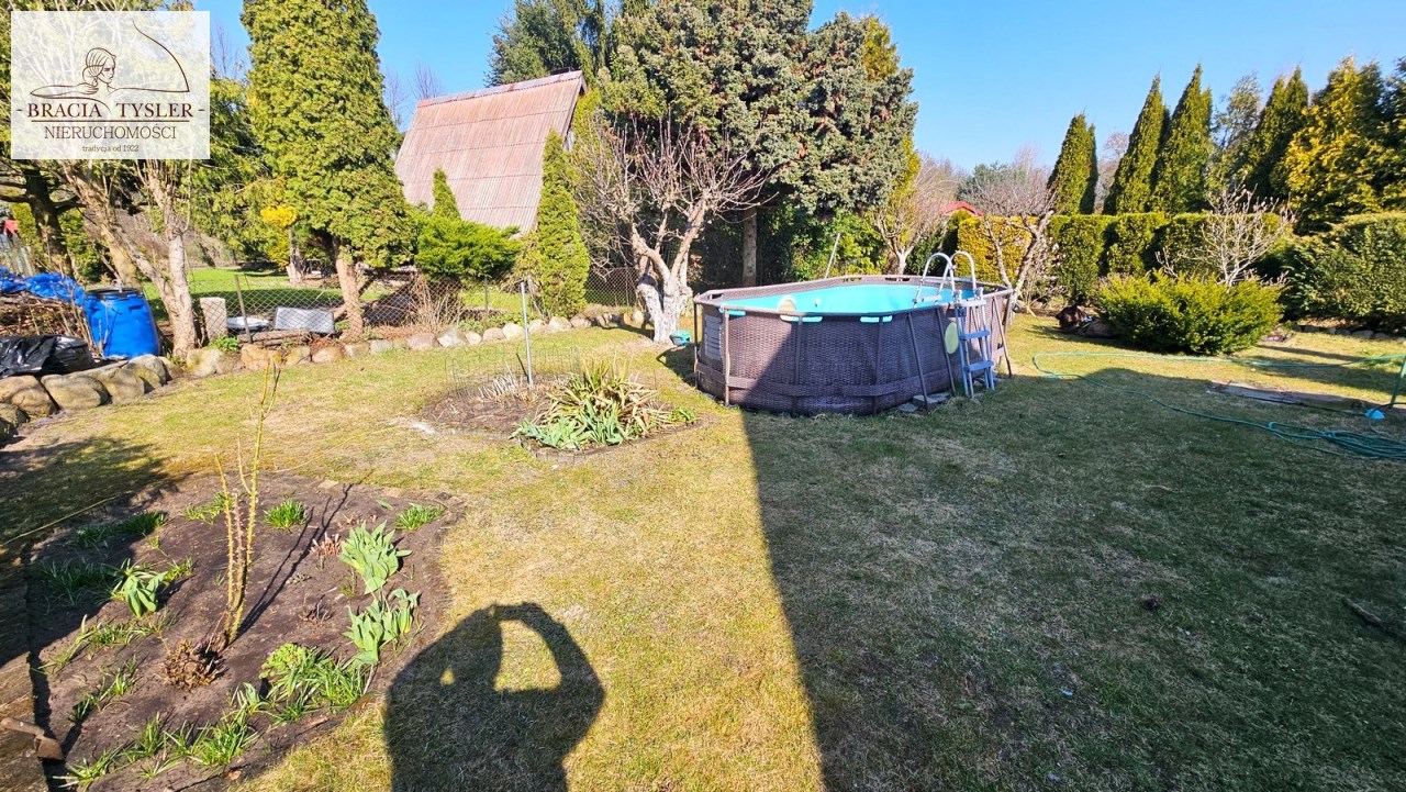 Domek jest wykonany bardzo starannie. Do wprowadzenia. Docieplony wełną mineralną. Konstrukcja murowana. Okna PCV. Na dachu blacha. Duży salon z klimą. Umeblowany. Deski. Wyposażona kuchnia. Lodówka, kuchenka, zlew, meble. 2 łazienki z prysznicem i WC. Bojler elektryczny. Nowe okna PCV. Na podłogach kafle. 2 ustawne pokoje. W pokojach kanapa, komoda, stół, krzesła. Oddzielna kuchnia z oknem. Drugi pokój na górze z balkonem. Prąd, woda działkowa. Działka w całości ogrodzona płotem z siatki. Zagospodarowana. Możliwość wjazdu autem. Ogrzewanie - elektryczne - klimatyzacja. Duży zadaszony taras. Grill. Basen 10 m2. Duże szambo. Na działce posadzone drzewa, kwiaty. Drzewa, krzewy ozdobne. Murowany grill.