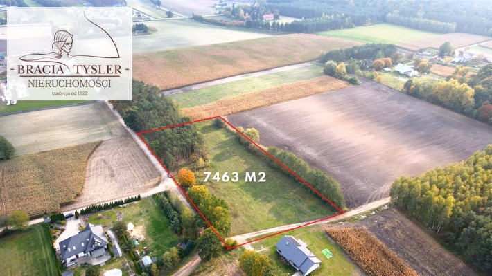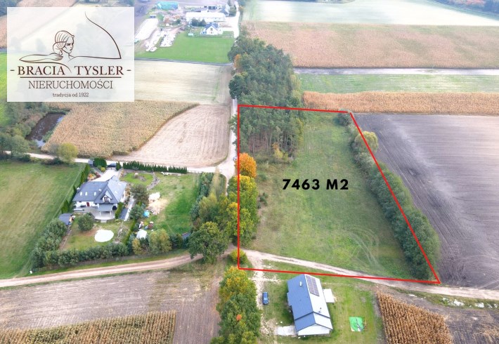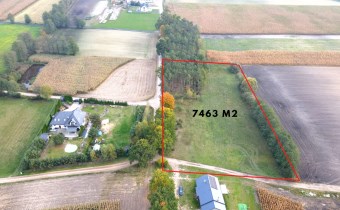 POWIERZCHNIA: 7463 mw tym ok. 1500 m2 stanowi prywatny las (odgradzający od drogi).