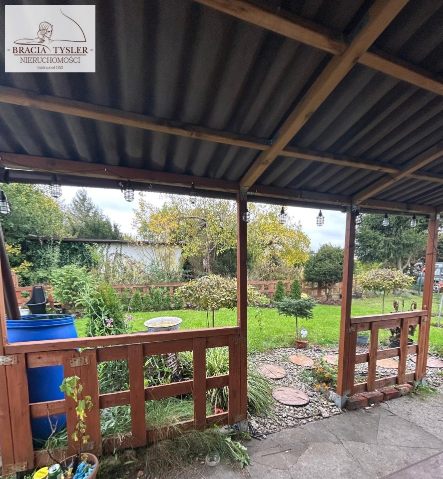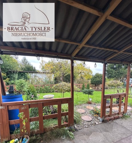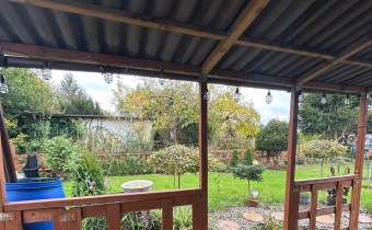 • Altana połączona z domkiem, dach pokryty włóknem falistym, całość z rynnami.