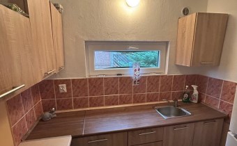 • Kuchnia wyposażona w kuchenkę gazową (na butlę), zlew, szeroki blat kuchenny oraz lodówko-zamrażarkę.